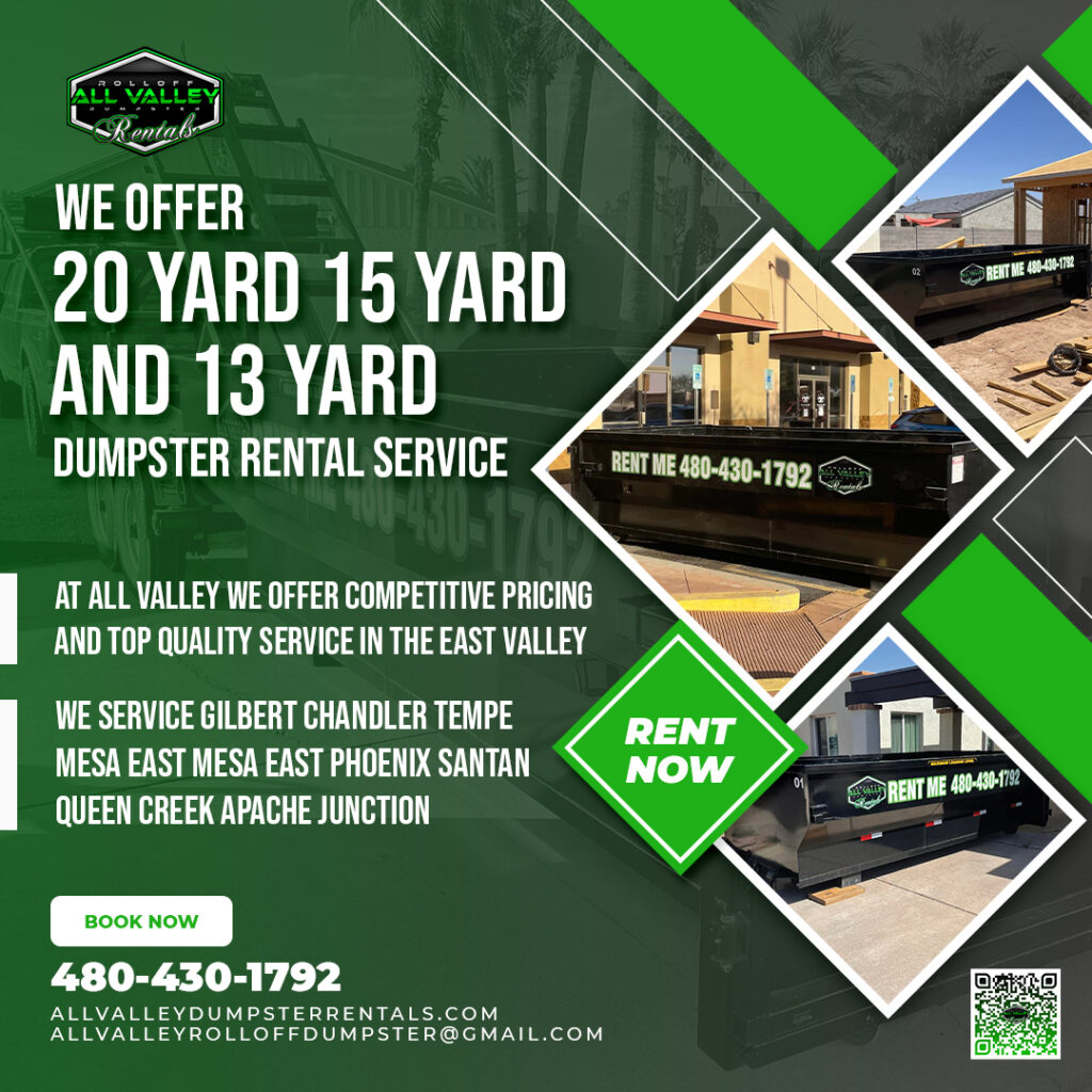 All Valley Rolloff Dumpster Rentals provides fast, reliable, and affordable dumpster rentals for residential, commercial, and construction projects across the Valley. We specialize in debris, concrete, and demolition cleanup with flexible scheduling, same-day delivery, and professional service you can count on. Locally owned and dedicated to keeping your jobsite clean and efficient.